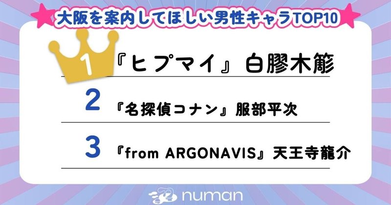 1位は『ヒプマイ』簓! 大阪を案内してほしい男性キャラTOP10『コナン』平次『CCさくら』ケロちゃん『アルゴナビス』龍介etc