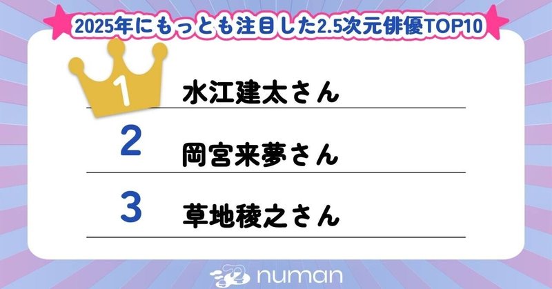 アニメ、声優、2.5次元俳優、アイドル、VTuber等を軸に、ユニークなテーマの読者アンケートを毎月3~4本ほど実施しランキング形式で発表。ぜひあなたの“推し”の名前を見つけてみてください。