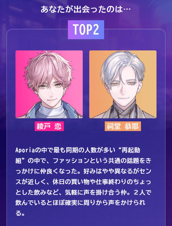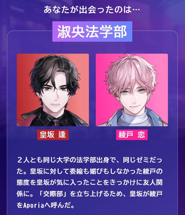 2人は同じ大学の同じゼミで、皇坂さんは綾戸さんのフラットな態度を気に入り、その後に彼をAporiaに誘ったそう。それを読んで、この「TOP2」の関係性に関しても腑に落ちるものがありました。綾戸さんのそういうところが、祠堂さんにもフィットしたのかな~と。